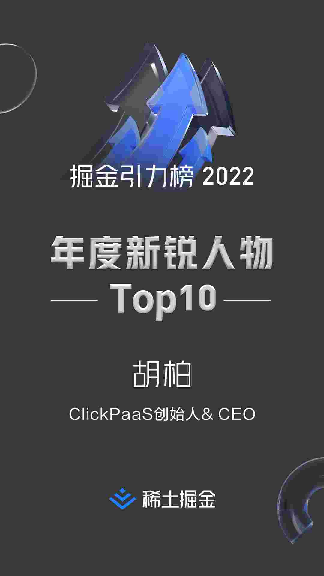 • 稀土掘金社区首届年度10大新锐人物榜单揭晓——钱能钱包创始人、、、、CEO胡柏实力登榜